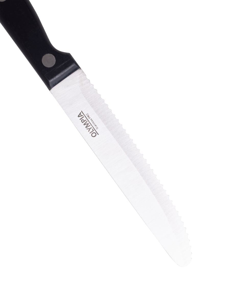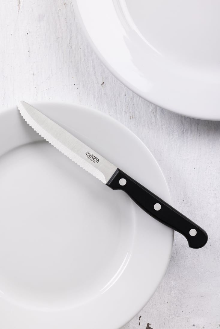 Practical, durable, and stylish, these rounded steak knives from Olympia's Taverna collection are an ideal choice for busy restaurants, pubs and cafes. Featuring a 215mm serrated blade, each knife ensures effortless cutting through even the toughest cuts of meat.