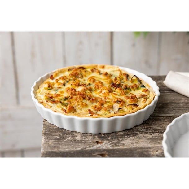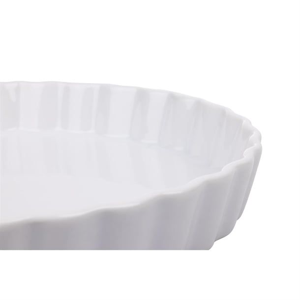 A welcome addition to any table, this traditional, white flan dish from Olympia is designed to provide a great value and hardwearing porcelain crockery solution for busy hotels, canteens and restaurants. Strengthened rolled edges and the fully vitrified body gives great glaze durability, making it ideal to withstand the rigours of the professional catering environment. The dish is oven, microwave, dishwasher and freezer proof.
